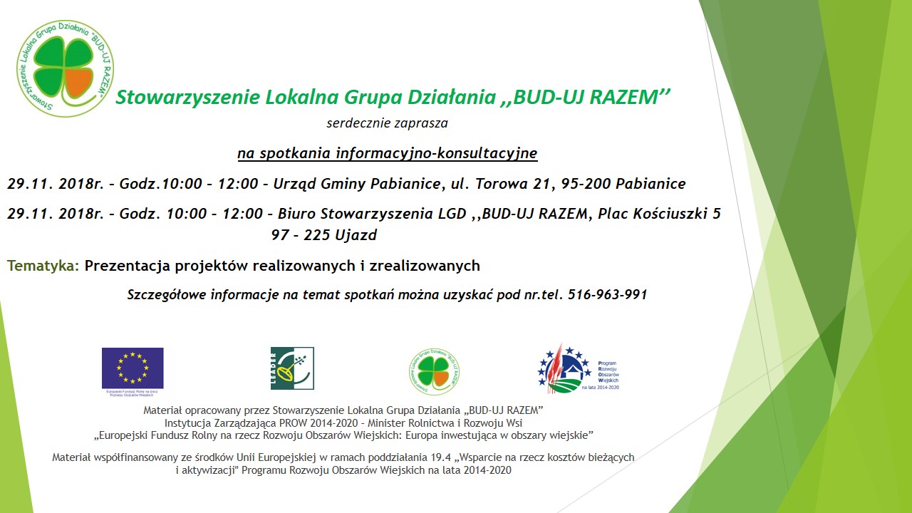 Stowarzyszenie Lokalna Grupa Działania „BUD-UJ RAZEM” serdecznie zaprasza na spotkania informacyjno- konsultacyjne