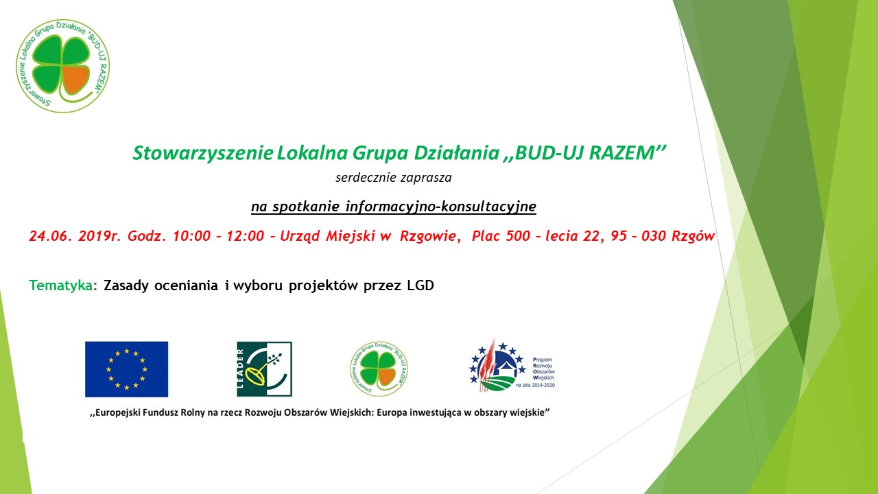 Zapraszamy na bezpłatne spotkanie dla mieszkańców LGD „BUD-UJ RAZEM” - dotyczące zasad oceniania i wyboru projektów przez Stowarzyszenie LGD „BUD-UJ RAZEM” w ramach Programu Rozwoju Obszarów Wiejskich na lata 2014-2020.