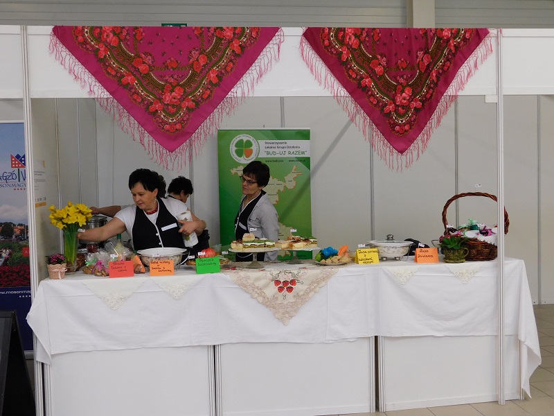 Trwające od 23 do 25 marca Targi Turystyki Kulinarnej, będące jednym z elementów obchodów Dni Przyjaźni Polsko-Węgierskiej, były doskonałą okazją do zaprezentowania najsmaczniejszej strony naszego regionu. Pod sztandarem Stowarzyszenia LGD „BUD-UJ RAZEM” swoje produkty zaprezentowało sześć gmin członkowskich. Odwiedzający nasze stoisko mogli spróbować zarówno tradycyjnych dań podawanych na ciepło takich jak kugiel, zalewajka, prażoki czy kapuśniak, ale także charakterystycznych dla obszaru wypieków, zakąsek i serów. Dużym zainteresowaniem cieszyły się również przetwory oraz rodzaju nalewki i miody.