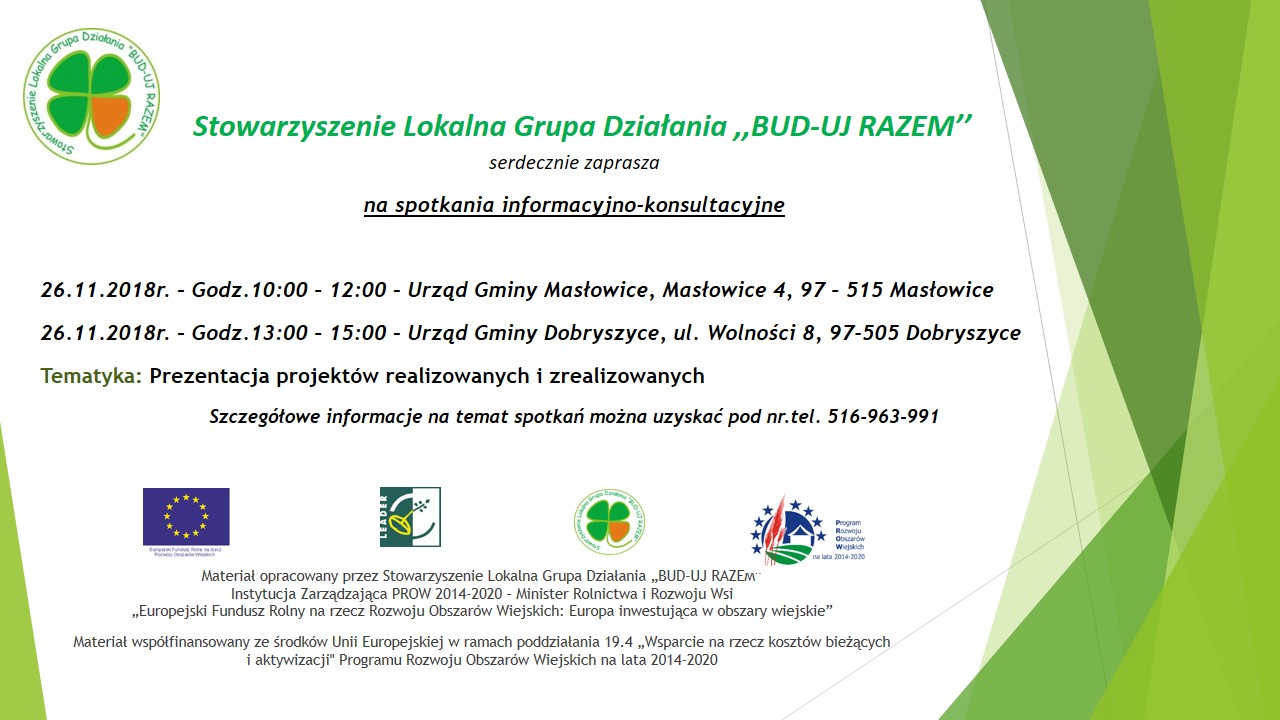 Stowarzyszenie Lokalna Grupa Działania „BUD-UJ RAZEM” serdecznie zaprasza na spotkania informacyjno- konsultacyjne